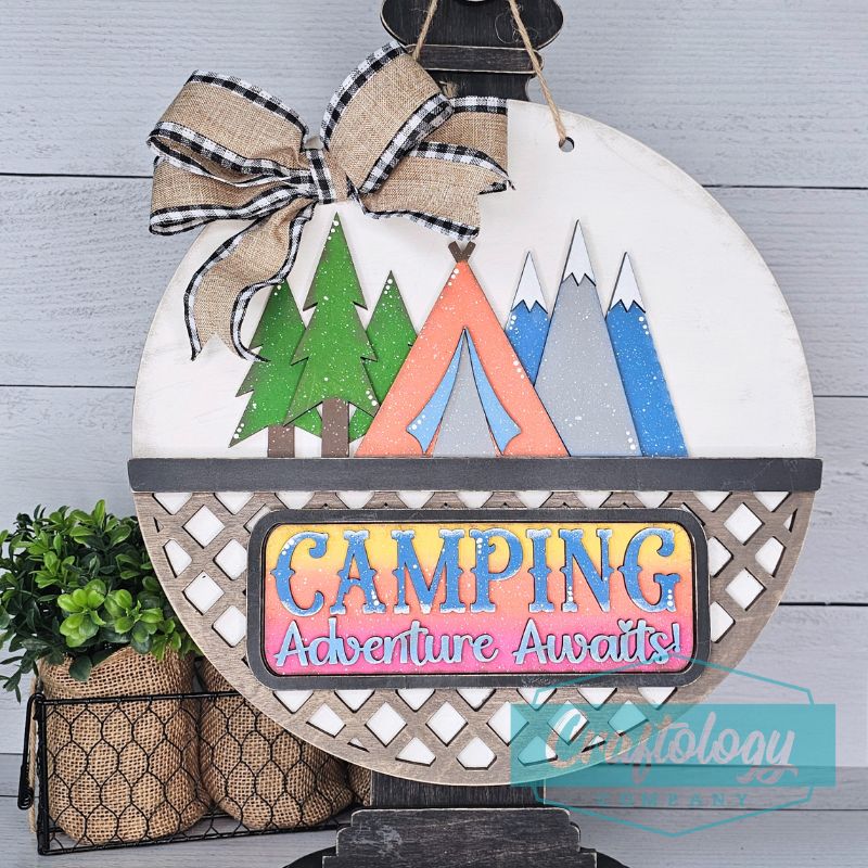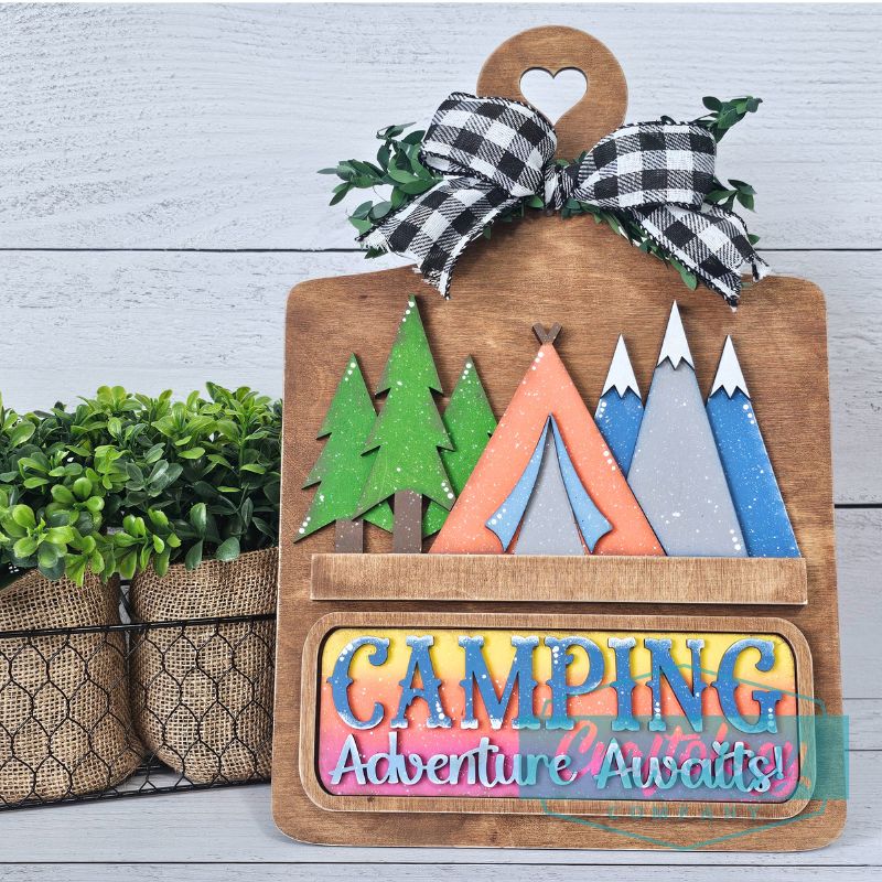 This Camping Adventure add-on DIY kit fits the Farmhouse Vintage Truck, Breadboard, Pallet Board and Round Door Hanger Interchangeable bases (not included). Mix and match other add-ons to create unique and custom home decor.