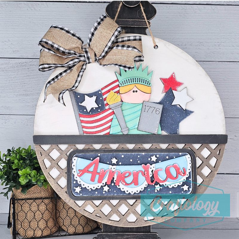 This America add-on DIY kit fits the Farmhouse Vintage Truck, Breadboard, Pallet Board and Round Door Hanger Interchangeable bases (not included). Mix and match other add-ons to create unique and custom home decor.