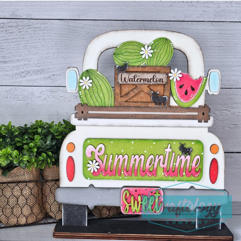 This Watermelon add-on DIY kit fits the Farmhouse Vintage Truck, Breadboard, Pallet Board and Round Door Hanger Interchangeable bases (not included). Mix and match other add-ons to create unique and custom home decor.