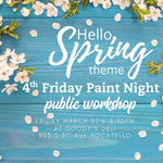 Our monthly 4th Friday Paint Nights feature themed interchangeable inserts, giving you the chance to paint a new insert each month. Additional décor projects may also be available.